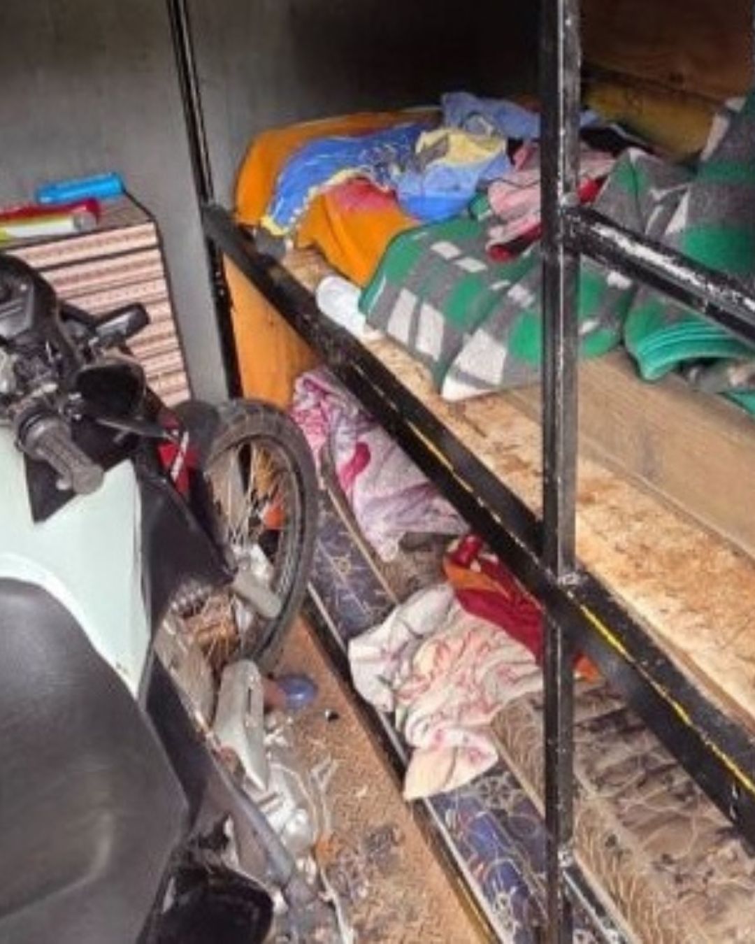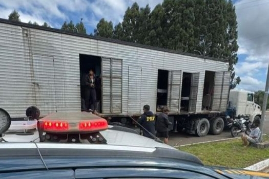 Além do transporte humano irregular, os policiais constataram que o semirreboque estava sem um dos pneus e que os demais apresentavam desgaste excessivo, comprometendo a segurança do veículo.