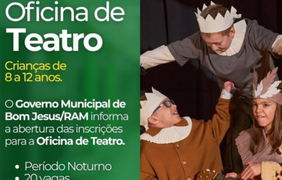 O Governo Municipal de Bom Jesus, por meio da Secretaria de Assistência Social, está com inscrições abertas para a Oficina de Teatro destinada a crianças de 8 a 12 anos.