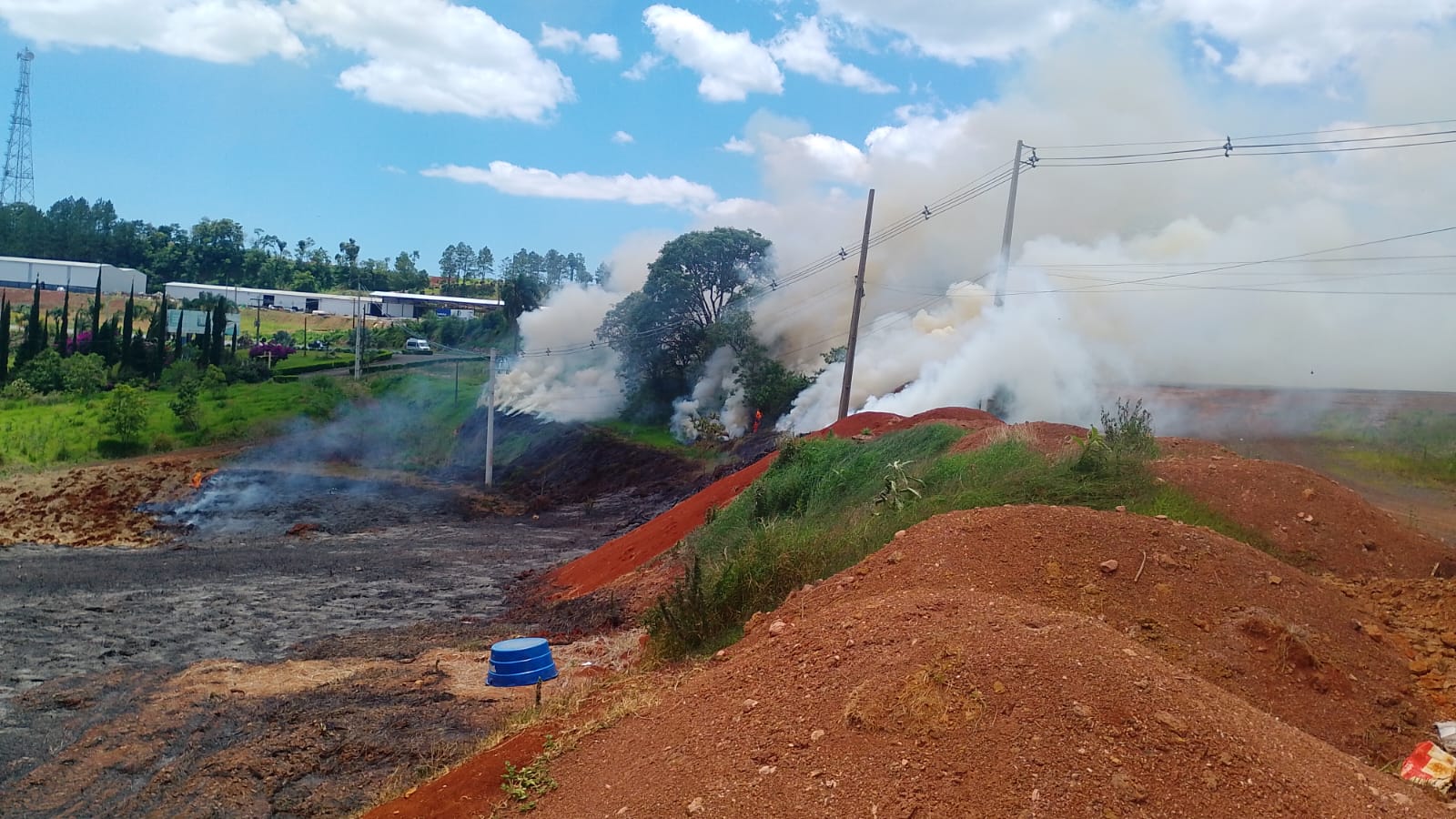 A fumaça intensa se espalhou pela rodovia e prejudicou momentaneamente o trânsito de veículos. Não há registro de feridos. As causas da queimada inicial não foram informadas.