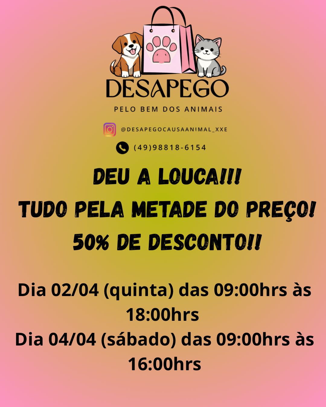 Durante o evento, todas as roupas e itens disponíveis terão 50% de desconto, oferecendo ao público a oportunidade de adquirir produtos a preços acessíveis e, ao mesmo tempo, contribuir com a causa animal.
