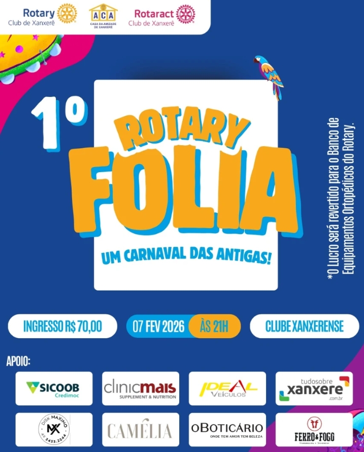 A proposta do evento é resgatar o clima dos carnavais tradicionais, reunindo música, fantasia e muita animação. A programação contará com a participação dos blocos Edivela Bloco Tamo Dentro, Carnaval Velha-Guarda, 007 – Em Busca da Folia 2026, Rebombinados, Clã Destinos e com a participação especial do Rotary Club de Xaxim, que também integra a festa.