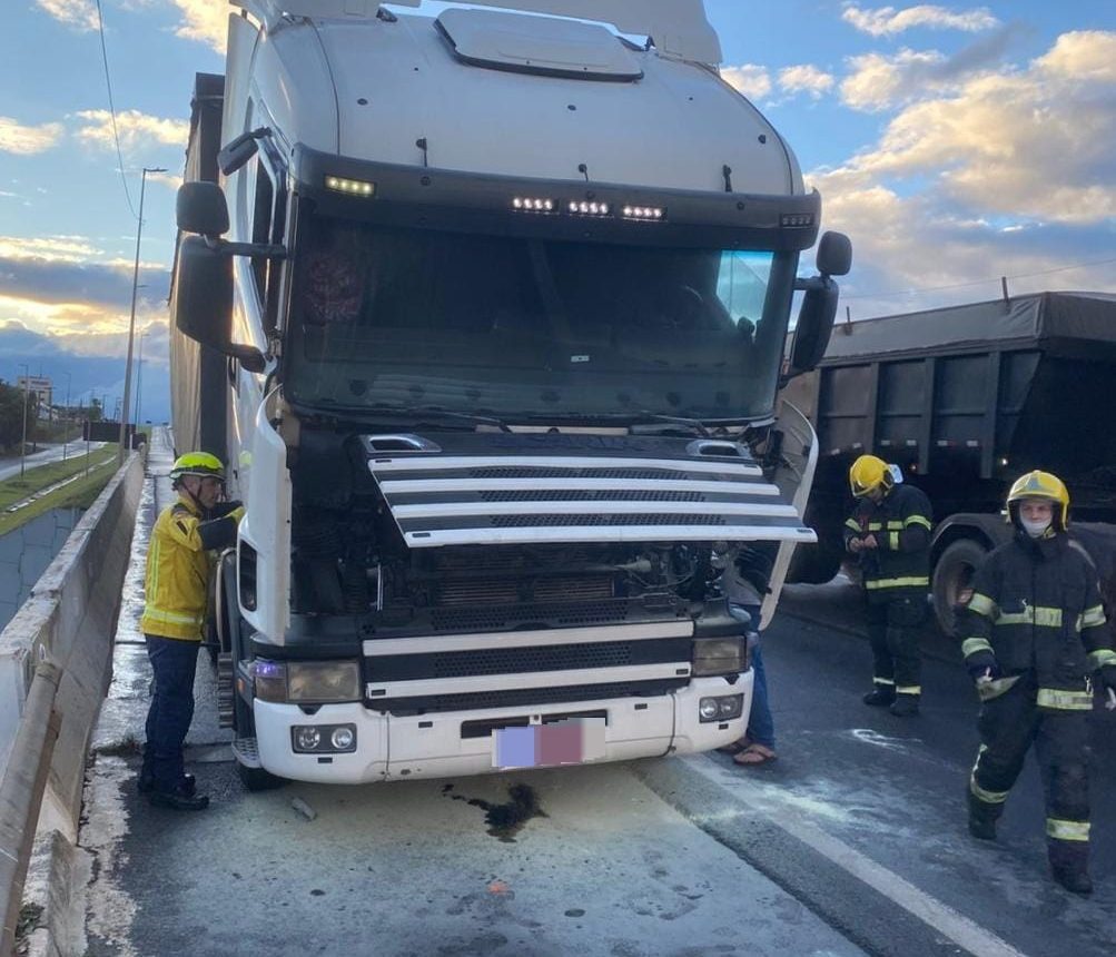 Carreta pega fogo na BR-282 em Xanxerê; motorista controla as chamas antes da chegada dos bombeiros