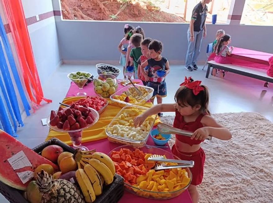 A programação envolveu uma série de experiências pensadas para despertar os sentidos e a curiosidade das crianças. No Berçário 2, por exemplo, os bebês exploraram frutas e outros alimentos com as mãos, sentiram texturas, cheiraram ingredientes naturais e participaram de pequenas degustações, tudo em um ambiente acolhedor e seguro.