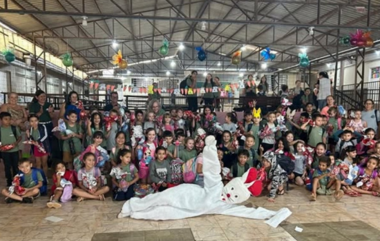 Um dos destaques foi a presença do Coelho da Páscoa, que surpreendeu as crianças e trouxe ainda mais entusiasmo à programação. O personagem interagiu com os alunos, distribuiu carinho e contribuiu para tornar o momento ainda mais especial.