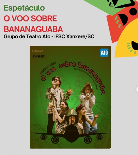 O Coletivo Cultural ABarca apresentou a estreia do espetáculo “O Voo sobre Bananaguaba” no IFSC Campus Xanxerê, em uma apresentação gratuita que levou o público a acompanhar a história de forma itinerante pelos espaços da instituição. A montagem propõe uma imersão no universo de Bananaguaba, território fictício que reflete conflitos, resistências e desigualdades presentes em comunidades do interior do país.