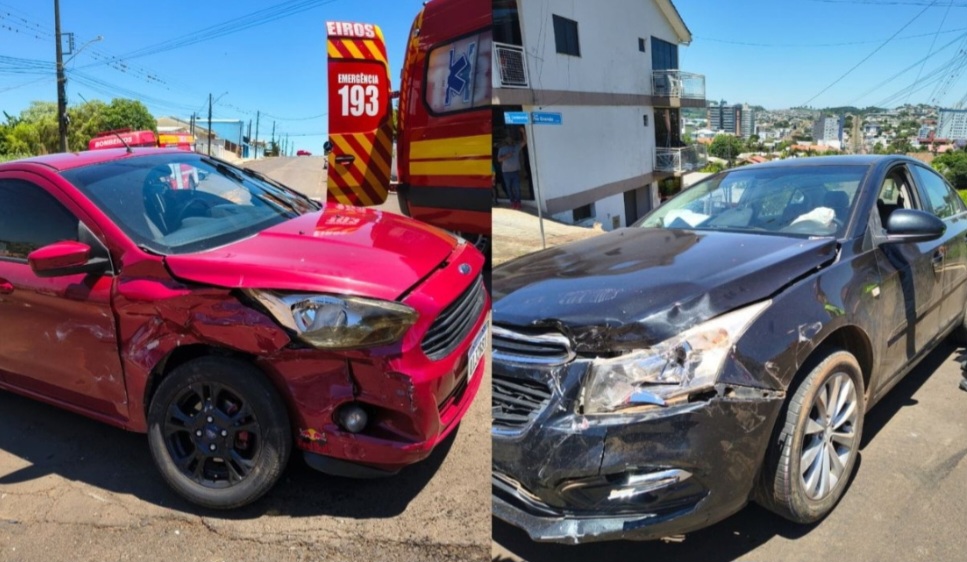 Colisão entre dois carros é registrada na Rua Rio Grande, em Xaxim