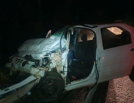 Segundo relato do condutor da caminhonete e com base nos vestígios e marcas na pista, a Polícia Militar Rodoviária (PMRv) suspeita que o Renault Logan tenha invadido a contramão, provocando a colisão frontal.
