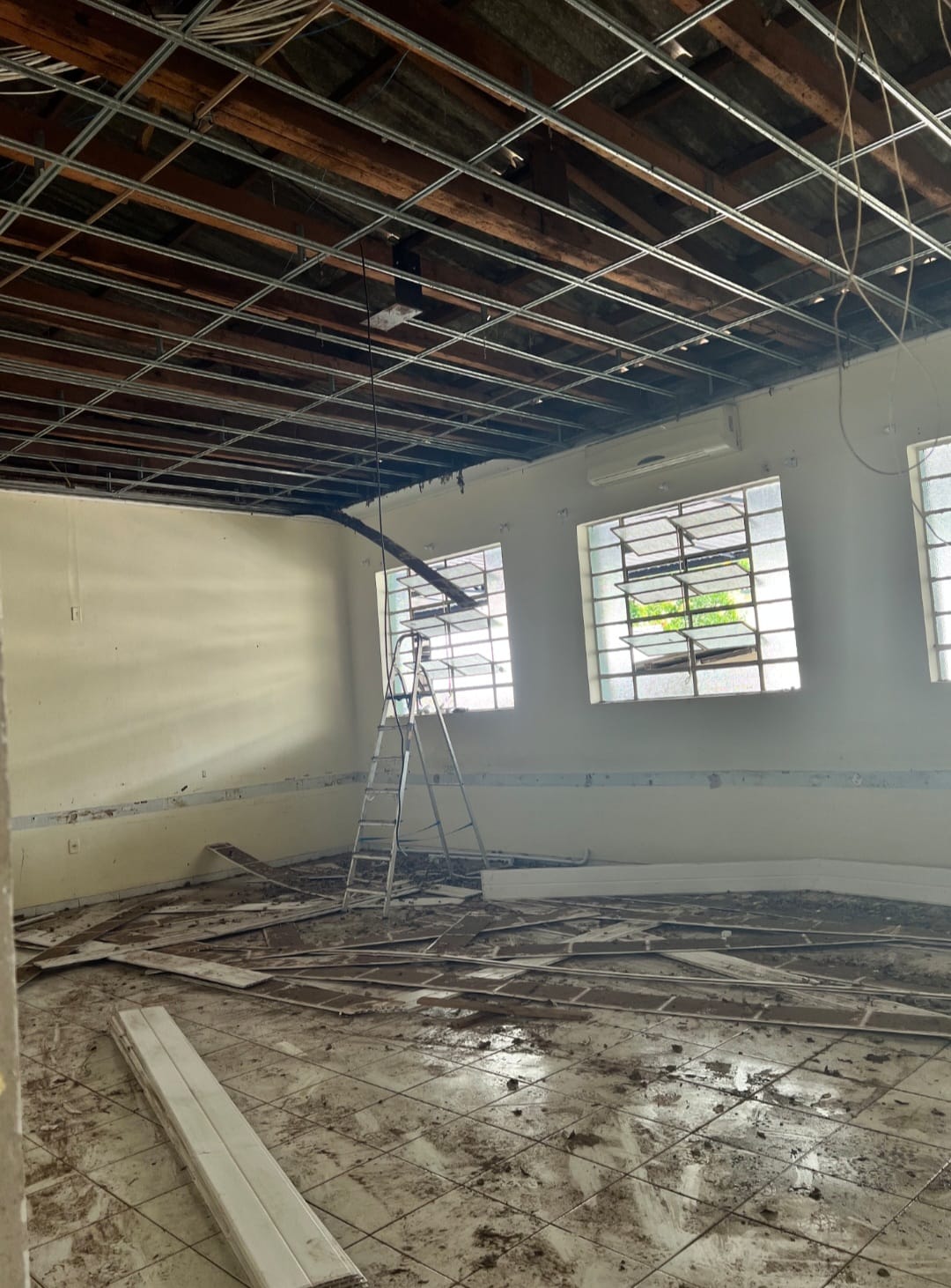 Teto de sala cedeu e direção avalia possibilidade de encerrar o ano letivo