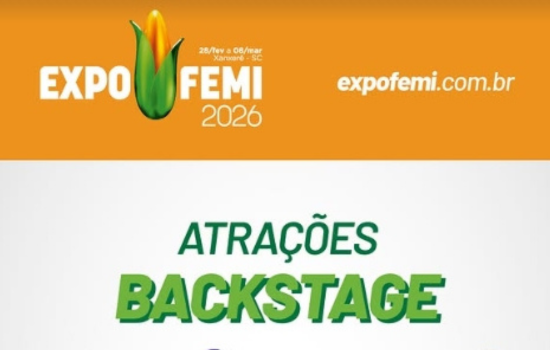 A organização da ExpoFemi 2026 divulgou a programação do palco Backstage, que contará com seis atrações musicais distribuídas entre os dias 28 de fevereiro e 8 de março, em Xanxerê. A agenda começa no sábado (28/02) com show de Milla Dal Molin. No domingo (01/03), sobem ao palco Julio e Eneni. A programação segue na quinta-feira (05/03) com Edu Farias, na sexta-feira (06/03) com Luisa Cristina, no sábado (07/03) com Vinão e se encerra no domingo (08/03) com o grupo Doce Vício.