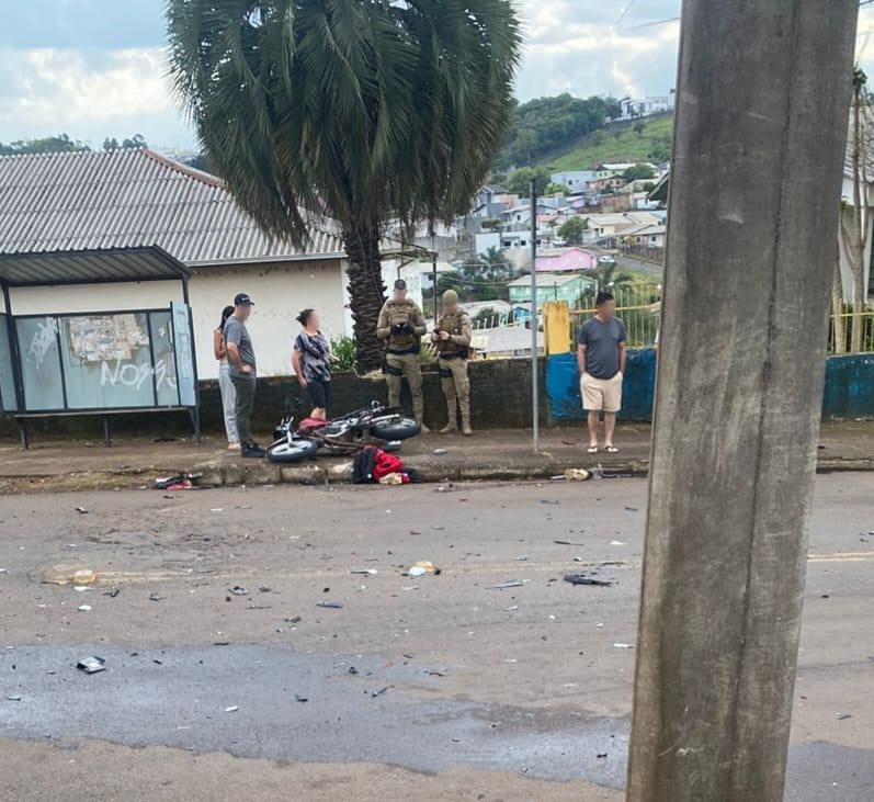 Um roubo de motocicleta terminou em acidente grave na manhã de sábado, 21 de setembro, em Xanxerê, deixando prejuízo para uma família do Bairro São Pedro. O caso ocorreu por volta das 8h, na rua Santos Dumont, no bairro Primo Tacca.