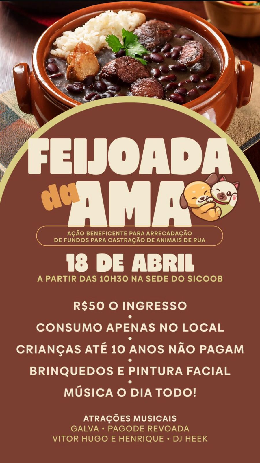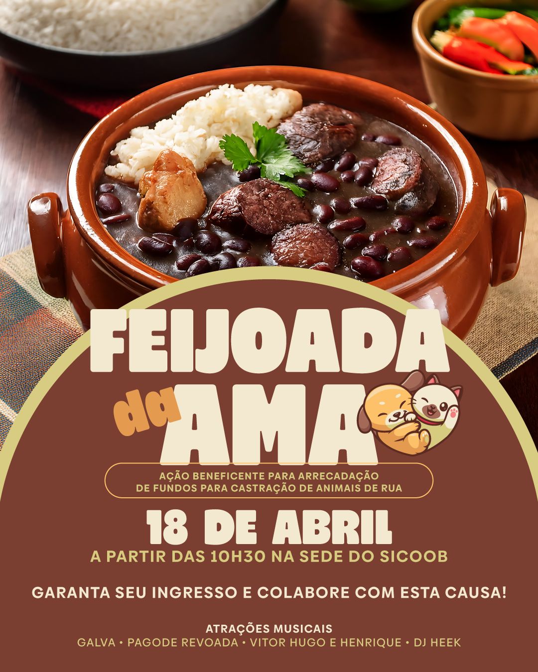 No próximo 18 de abril, Xanxerê será palco de um dos eventos mais aguardados do ano: a Feijoada da AMA (Associação Amizade em Ação). A ação acontece na Sede do Sicoob, com início às 10h30, reunindo boa gastronomia, atrações musicais e, principalmente, um propósito nobre: ajudar a causa animal.