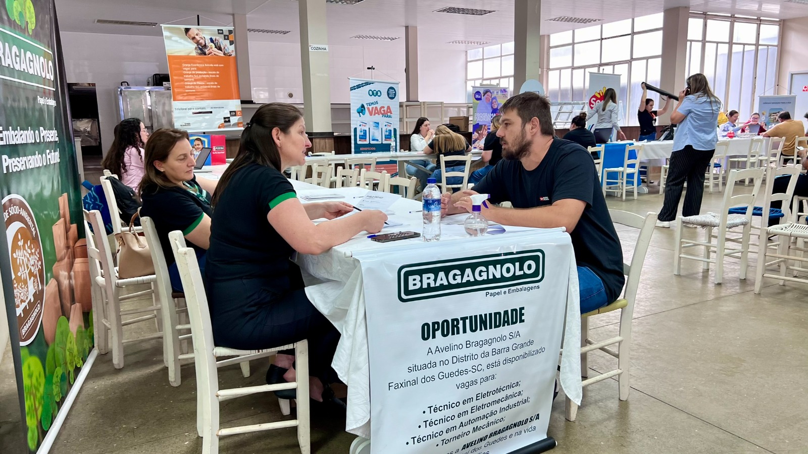 Cerca de 600 candidatos compareceram à 4° edição do Feirão de Empregos realizada pela Prefeitura de Xanxerê, nesta quinta-feira (16), onde puderam participar de entrevistas prévias e da entrega de currículos na busca pelas mais de 300 vagas de emprego disponíveis.