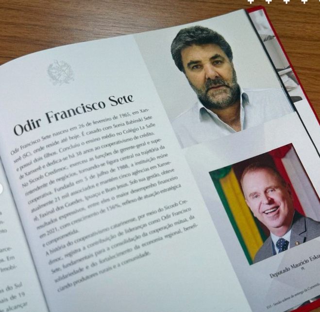 Proposta pelo Deputado Estadual Maurício Eskudark, a homenagem destaca a trajetória de Odir Sete como uma referência no cooperativismo de crédito e no desenvolvimento regional. “Odir Sete é referência no cooperativismo e no desenvolvimento da nossa região, liderando o Sicoob Credimoc a mais de 37 anos”, afirmou o Deputado Maurício Eskudark ao justificar a indicação.