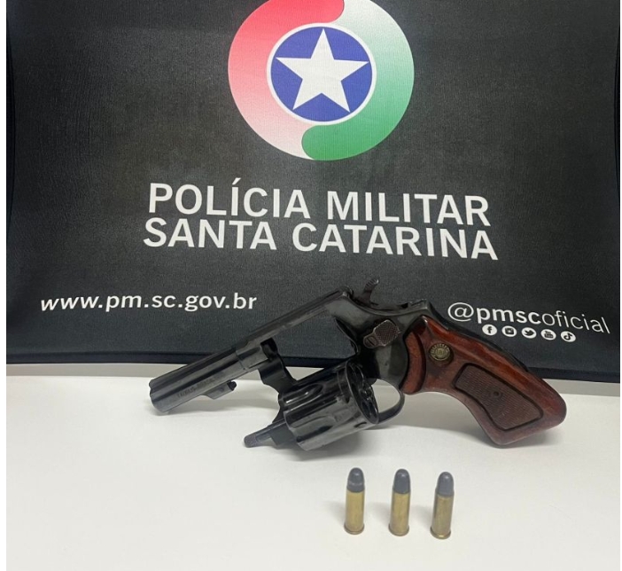 Segundo a mulher, por medo, ela escondeu a arma em outro cômodo da casa. Com autorização, os policiais entraram no imóvel e localizaram um revólver calibre .32, com numeração suprimida, municiado com três munições intactas, escondido debaixo de uma cama.