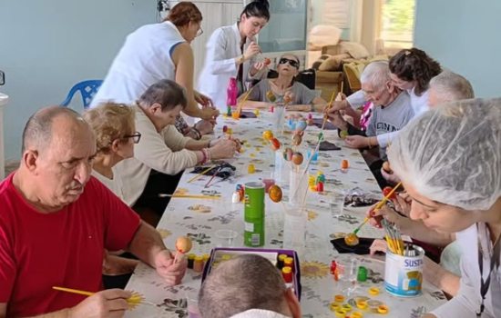Na tarde de quinta-feira (26), a equipe técnica formada por profissionais das áreas de pedagogia, nutrição, assistência social, psicologia, fisioterapia e enfermagem promoveu uma atividade especial com idosos em Xanxerê: a pintura de ovos de Páscoa utilizando tinta guache.