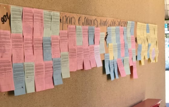 A Escola Joaquim Nabuco, em Xanxerê, realizou uma mobilização voltada ao SAEB com a participação das famílias: pais e responsáveis das turmas do 9º ano deixaram mensagens de carinho, incentivo e motivação para os estudantes, reforçando a importância de acreditar no próprio potencial e manter a dedicação nesta etapa do calendário pedagógico.