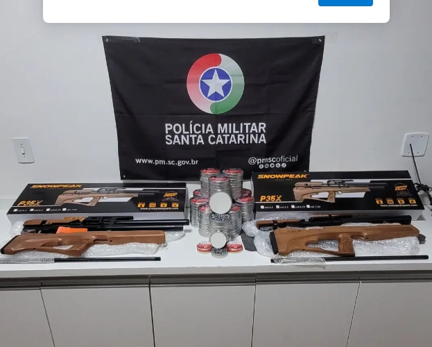A ocorrência foi registrada por volta das 21h, quando a guarnição do Posto 25 abordou uma caminhonete Fiat/Toro, conduzida por um homem de 50 anos. Durante a fiscalização no compartimento de cargas do veículo, os policiais localizaram armas de pressão e grande quantidade de munições trazidas do Paraguai sem a devida autorização aduaneira.