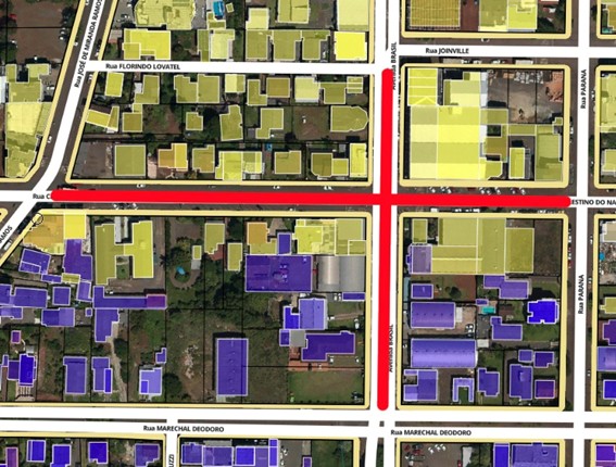 Entre as ruas Rui Barbosa e Olavo Bilac. Conversão para a Rui Barbosa será liberada.