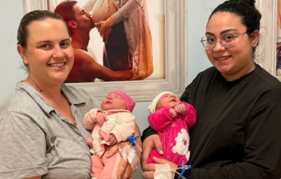 Heloísa e Jasmin vieram ao mundo com pouco mais de duas horas de diferença no Hospital Regional São Paulo, emocionando familiares e equipe médica.