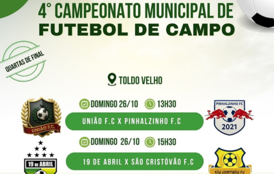 A primeira partida está marcada para as 13h30, entre União F.C. e Pinhalzinho F.C. Logo depois, às 15h30, entram em campo 19 de Abril e São Cristóvão F.C. A expectativa é de jogos equilibrados e muita disputa, já que a partir desta fase cada resultado define quem segue vivo na briga pelo título municipal.