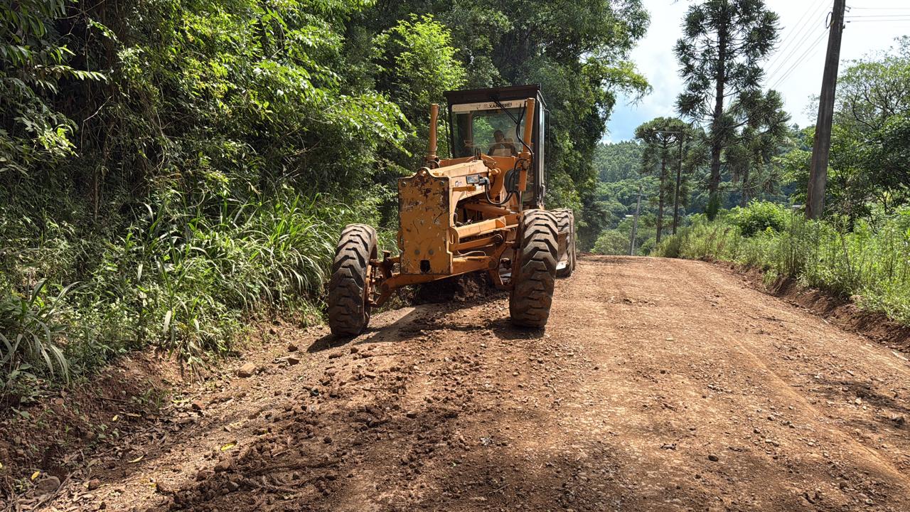 Nesta segunda-feira (13), foram iniciadas a instalação de tubulações nas estradas da Linha Santa Luzia e Monjolinho, que devem receber, posteriormente, pedras-rachão e passar por compactação para a aplicação do asfalto. Na cidade, uma frente atua no bairro São Jorge, com motoniveladora para a preparação da estrada para o recebimento do asfalto.