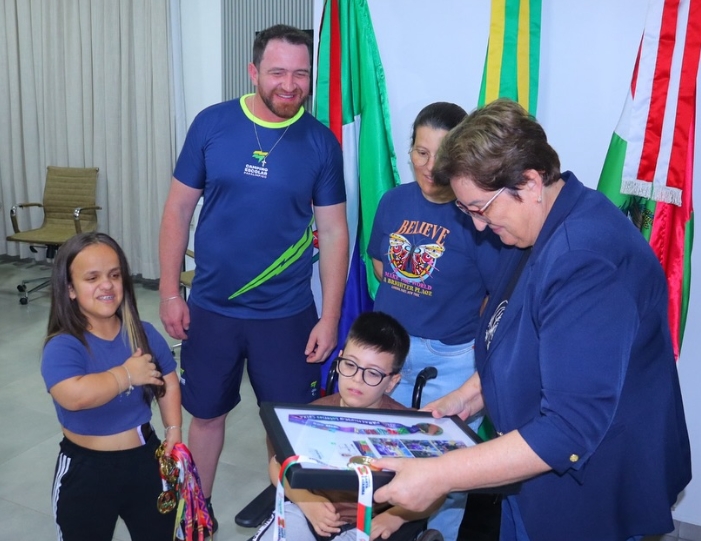 Na manhã de quarta-feira (12), os atletas estiveram no gabinete da prefeita Marta Tozetto, acompanhados pelo professor Tcharles Brun, responsável pelo treinamento no projeto. Durante o encontro, a gestora destacou o orgulho do município e a importância do empenho demonstrado pelos jovens, que servem de inspiração para a comunidade.