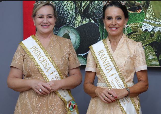 Os trajes destacam bordados com pedrarias e símbolos do milho, elemento central da feira. As coroas, também exclusivas para a edição 2026, reforçam a identidade do evento.