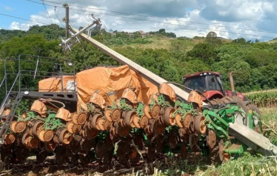 Um poste da rede elétrica foi derrubado na tarde desta sexta-feira (17) após ser atingido por um trator durante atividades de plantio na saída para a Linha Voltão, no interior de Xanxerê. O incidente provocou a interrupção temporária no fornecimento de energia elétrica na região.