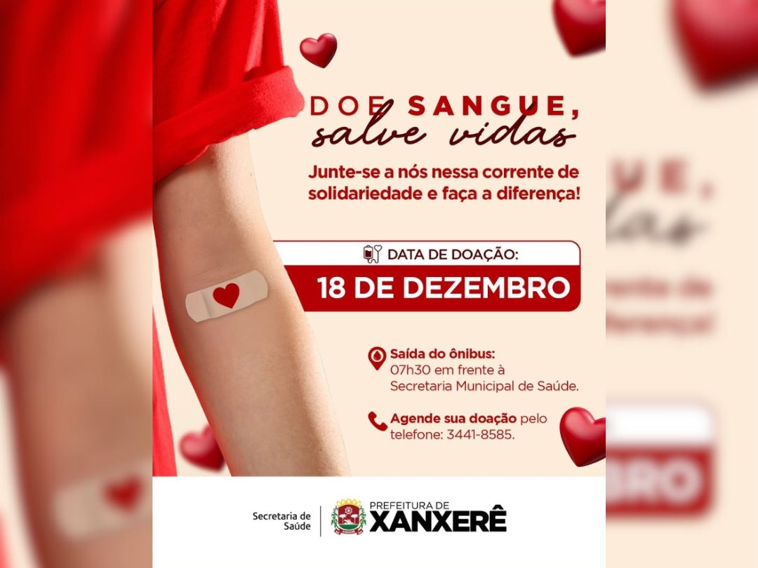 A Secretaria de Saúde de Xanxerê comunica a realização de uma nova ação de doação de sangue, essencial para a manutenção dos estoques do Hemosc. A iniciativa levará 20 voluntários para a coleta no Hemocentro Regional de Chapecó (Hemosc) no dia 18 de dezembro.