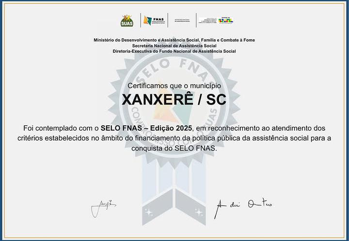 O município de Xanxerê, por meio da Secretaria de Assistência Social, foi contemplado com o Selo do Fundo Nacional de Assistência Social (FNAS) 2025. O resultado da certificação foi divulgado nesta semana e representa um marco para o município na eficiência da destinação dos recursos públicos.